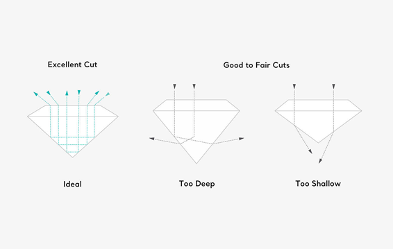 ダイヤモンドはどんなに無色透明でも、不純物がなくても、カットが良くなければ輝きません。カットによる反射によってキラキラ輝いているので、カットが輝きには一番影響があることを覚えておいてください。
