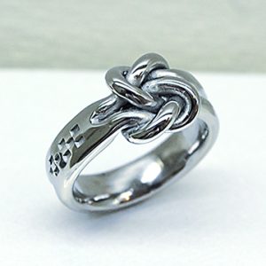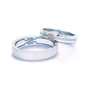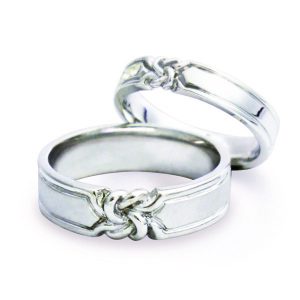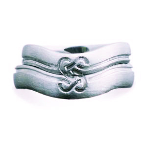 そのデザインは2本の紐が絡まりほどけることのない形を表しており、二人の心の絆を表現しております。