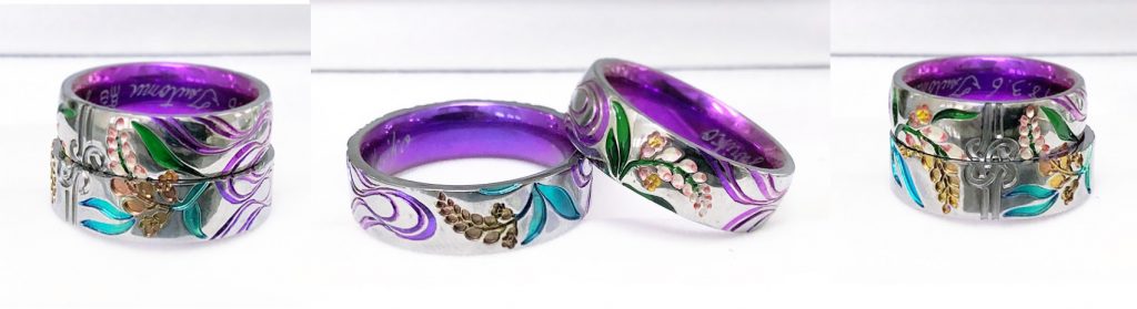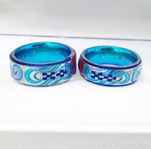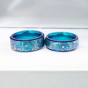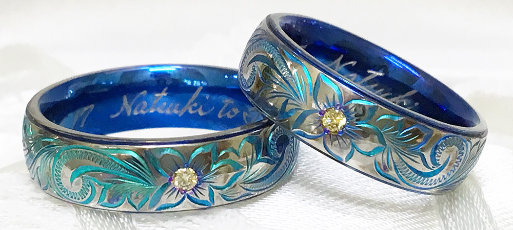 それは、沖縄とハワイに共通する、あの美しいエメラルドブルーの海の色。その海の色が表現できる。あの海がそのまま指輪になったような結婚指輪。それが、 沖縄チタンハワイアンジュエリーです。